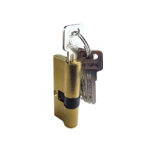 Специальная система антибампинг предусматривает уникальное расположение штифтов. При контакте ключа с цилиндровым механизмом задействованы две поверхности сканирования. Верхняя часть сканирует волнистую линию, благодаря которой подобрать дубликат ключа практически невозможно. Нижняя часть считывает перфорацию ключа. Материал корпуса цилиндра: латунь. Цвет: золото матовое.